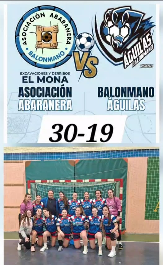 El equipo senior femenino de la Asociación Abaranera que participa en la categoría de Primera Nacional Femenina ha ganado al Balonmano Águilas en partido aplazado y suma dos puntos más que lo pone más cerca para que los partidos del Play Off se jueguen en Abarán con el apoyo de la afición en el Pabellón «Infierno» del Polideportivo.