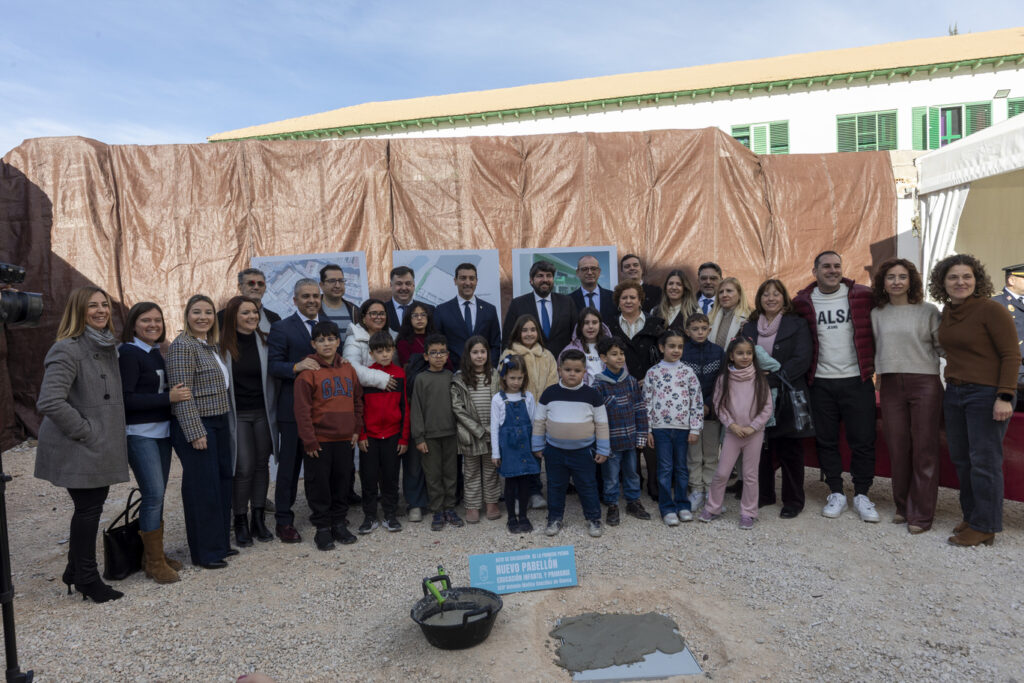El jefe del Ejecutivo autonómico, Fernando López Miras, y el alcalde del Consistorio, Á. Pablo Cano, han colocado hoy la primera piedra del nuevo pabellón que contará con seis aulas de Infantil, comedor y gimnasio y una inversión que supera los tres millones de euros.