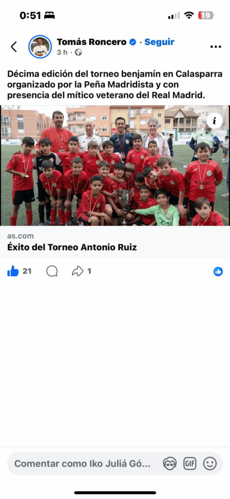 El pasado domingo, 12 de abril, vivimos una gran jornada de deporte base con la celebración del X Torneo de Fútbol Base “Antonio Ruiz Cervilla”, en categoría benjamín, en el Campo Municipal de La Caverina, en Calasparra, organizado por la Peña Madridista de esta población.