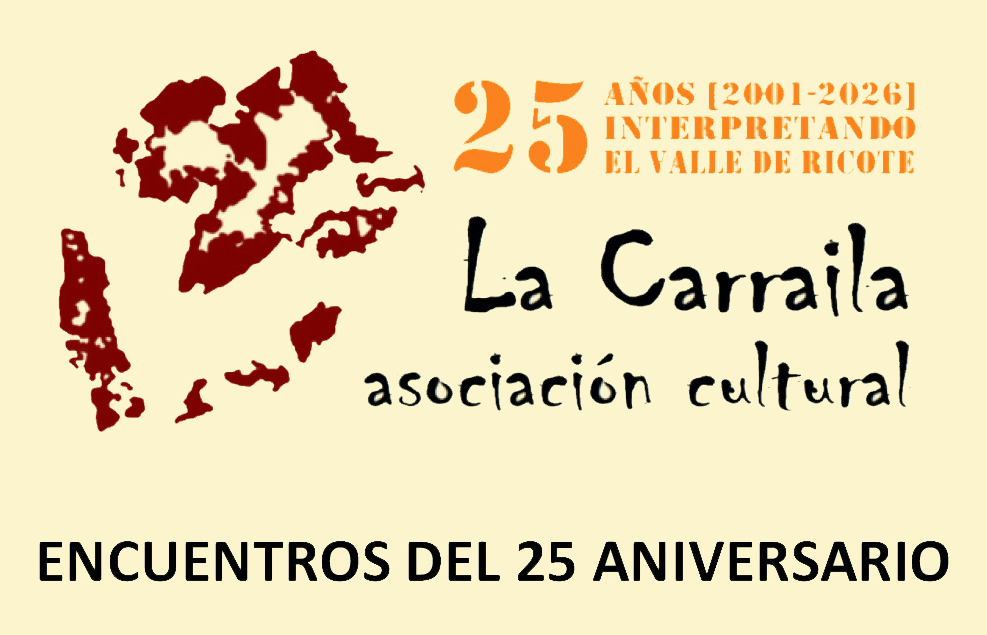Esta importante efeméride para socios y socias de «La Carraila» está siendo compartida con residentes, visitantes y con todas las entidades valricotíes, públicas y privadas, que han venido colaborando desde que surgiera en Abarán un 14 de marzo de 2001; una alianza que ha permitido que «La Carraila» se haya desarrollado durante los últimos 25 años a través de sus cuatro pilares asociativos: investigación, divulgación, protección y recuperación del patrimonio cultural y natural del Valle de Ricote (lacarraila.es).
