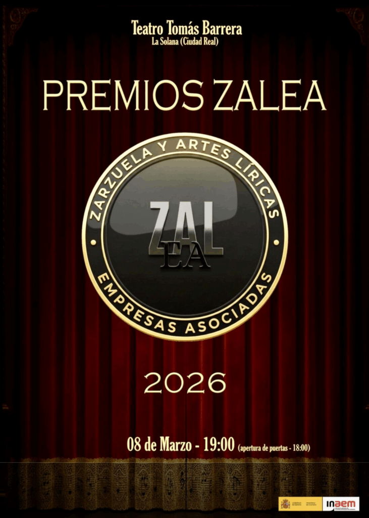 La asociación ZALEA (Zarzuela y Artes Líricas, Empresas Asociadas) anuncia la celebración de la primera edición de los Premios ZALEA, un nuevo reconocimiento al talento, la creación y la innovación dentro del género lírico español. Los premios serán entregados en una gala que tendrá lugar el domingo 8 de marzo de 2026, a las 19:00 horas, en el Teatro Auditorio Tomás Barrera, en La Solana (Ciudad Real).