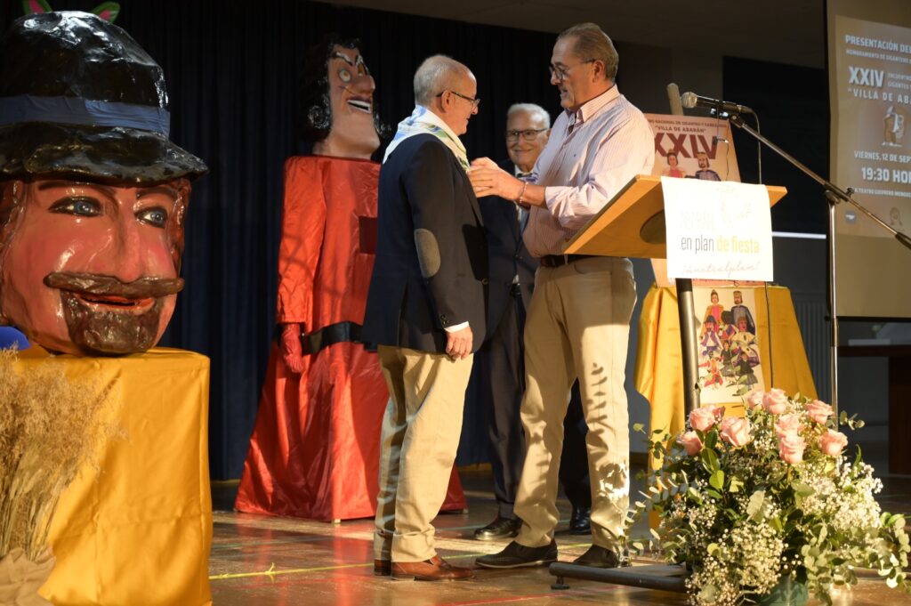 Presentada una nueva edición, la XXIV, del Encuentro Nacional de Gigantes y Cabezudos «Villa Abarán», que ocupará las calles de Abarán, el próximo 21 de septiembre, y que será un estallido de alegría y color. El acto comenzó a ritmo de Dulzainas. Pepe Gómez, cabeza de la Asociación «El Tío Pajero» abrió el acto: «Los Gigantes y Cabezudos sin acompañamiento musical es como el cine mudo.. Un pueblo que no escucha el altavoz de la historia se queda un poco sordo y si no sabe mirar hacia adelante con el mensaje de su pasado le falta bastante vista. Con las Dulzainas en los Gigantes, la película será más divertida». Y prosiguió para presentar al Gigantero de Honor 2025: «Hay gente que recopila y actualiza el alma de un pasado, O somos historia, o no seremos nada». «Erase un hombre a su Abarán pegado». José Simeón Carrasco Molina «Pepe Jarras», al que se le impuso el Pañuelo y Pin identificativo de la Asociación El Tío Pajero.