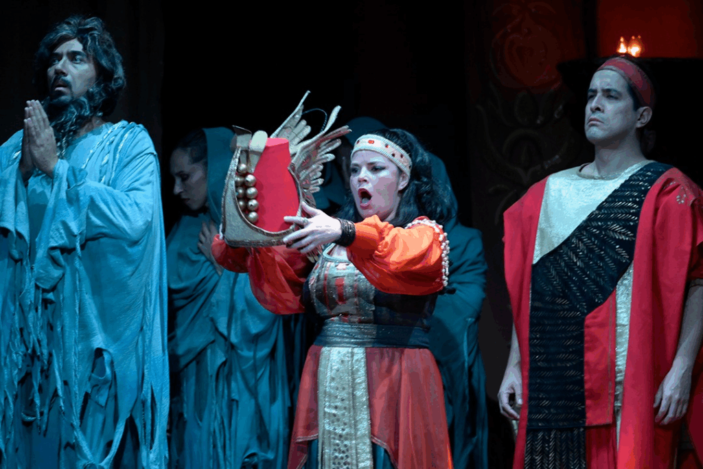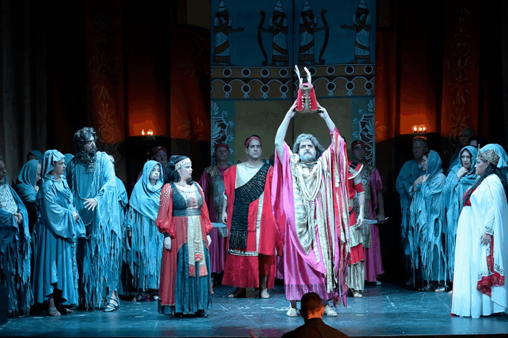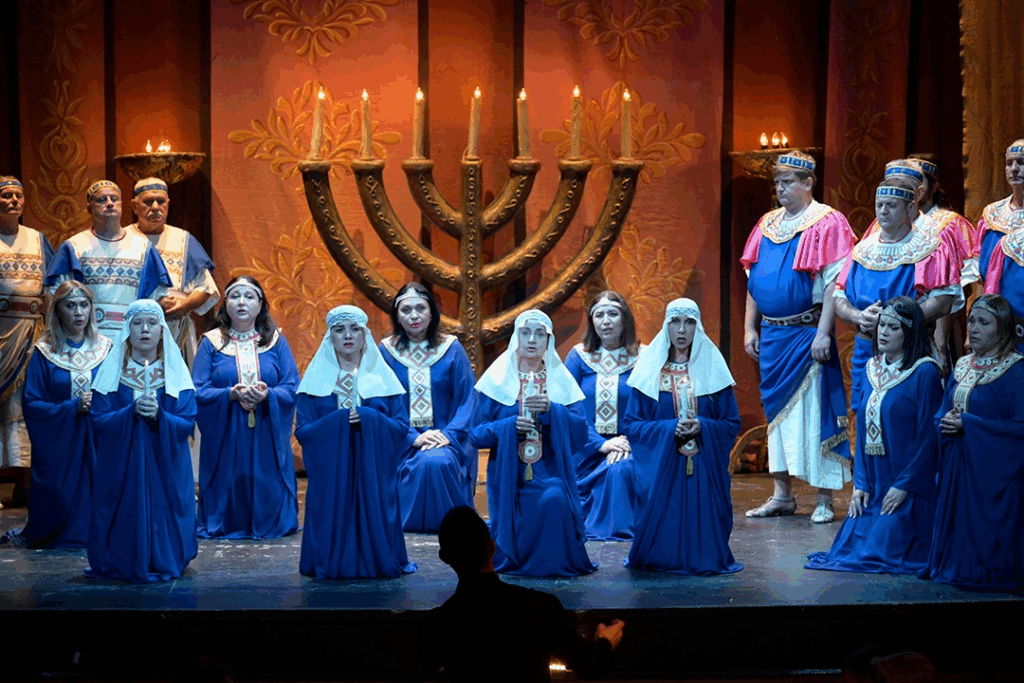 Genial la escenografía en tan minúsculo espacio escénico, vestuario vistoso y en rigor histórico, y un elenco en el que sorprendió el bajo Víktor Shavchenko en un insuperable Zaccaría.