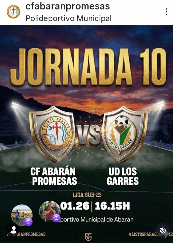 Por otra parte el Abarán Promesas se enfrenta a la Unión Deportiva Los Garres en el Polideportivo Municipal de Abarán, en partido de la Jornada 10. Partido en la cumbre, primero contra segundo, Los Garres con 25 puntos y el Abarán Promesas con 20 y en un gran momento de forma y juego. Veremos, después del parán navideño, como responden ambos equipos. León Abellán (Los Garres), segundo máximo goleador de la categoría, será una de las amenazas para los abaraneros.