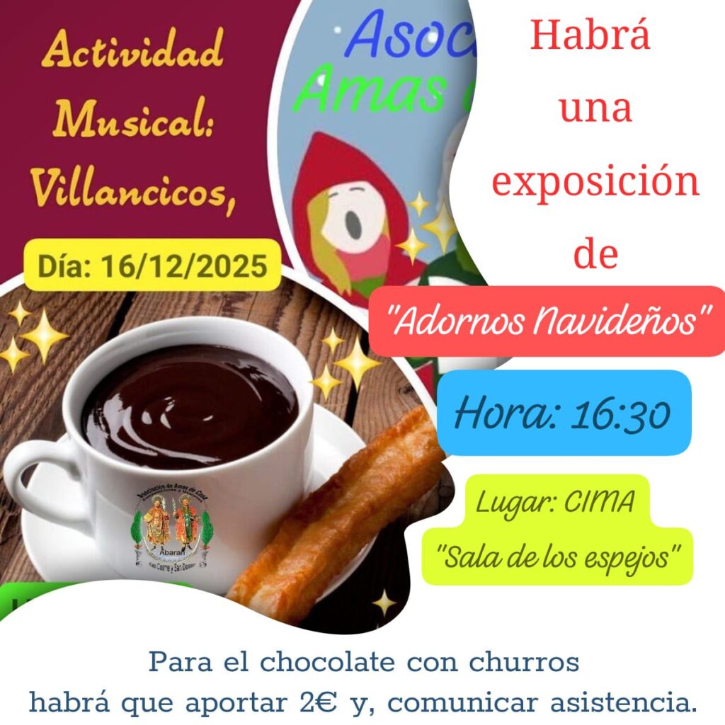 La Asociación de Amas de Casa de Abarán ha convocado un evento musical de Villancicos, el próximo 16 de diciembre de 2025. A las 16:30 en el CIMA, en «La Sala de los Espejos» tendrá lugar este evento que contará además con una exposición de «Adornos Navideños».