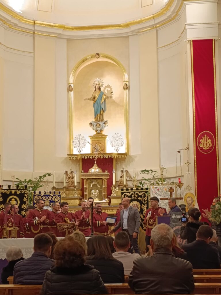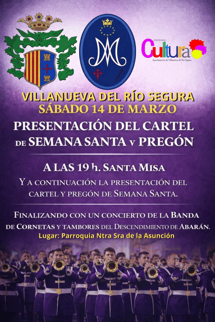 El pasado sábado 14 de marzo la Banda de Cornetas y Tambores de la Hermandad del Descendimiento y Oración en el Huerto de Abarán participó en el acto de Presentación del Cartel de Semana Santa y Pregón. Una actuación brillante y reconocido por el pueblo de Villanueva del Río Segura