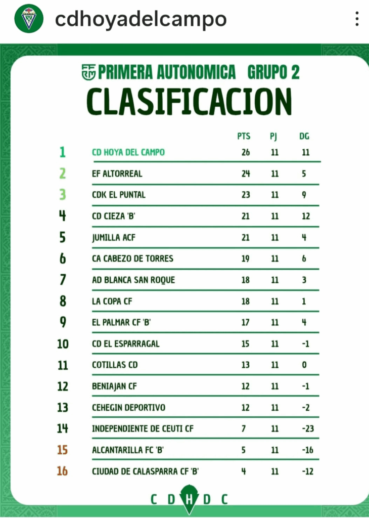 | 2 | Ciudad de Calasparra | 27 | 13 | 8 | 3 | 2 | 23 | 14 | +9 | |
