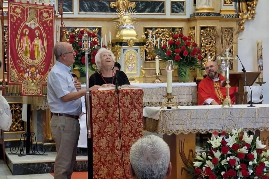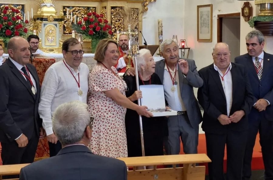 Teresa Montiel Martínez ha sido nombrada Hermana Mayor de la Hermandad de San Cosme y San Damián 2025, en el marco incomparable de la Ermita de los Santos Médicos. Rodeada de familiares, amigos y vecinos, fue presentada por José Simeón Carrasco, Cronista de la Villa y miembro de la Hermandad, quien destacó la vinculación y colaboración desde su infancia junto a su marido Indalecio. «Es un ejemplo de algo más profundo, el amor por las cosas de su pueblo, por sus costumbres y tradiciones, por sus dichos y anécdotas, por sus gentes y hasta por su música, pues no en vano, Teresa es, la única superviviente, de un coro, que interpreta la música de David Templado desde los años 40». Confirmado por la propia Doña Teresa que afirmó: «Yo soy de los Santos Médicos desde que era chiquitica. Me iba con mi madre al coro a cantar, ella cantaba los solos y yo me ponía delante de ella». Recordó los ensayos en casa de David Templado y los esfuerzos realizados por mantener la iglesia y el trono. José Simeón Carrasco se refirió a Indalecio Carrasco, marido de Teresa, como un hombre respetado y recordó que el centro y lo que da sentido a nuestras fiestas, son los Santos Médicos y la Virgen del Oro.
