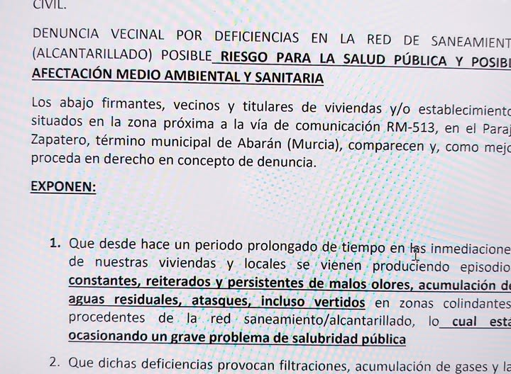 Desde VOX Abarán denunciamos el abandono que padecen estos vecinos, que no están reclamando ningún privilegio, sino algo tan elemental como vivir en condiciones dignas, sin malos olores y sin la incertidumbre de que esta situación pueda perjudicar su salud.